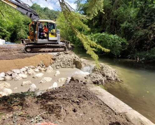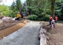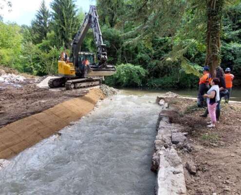 - La réalisation d’opérations d’aménagement : les opérations se déploient suivant une phase de conception, une phase réglementaire et une phase de réalisation. L’ensemble est accompagné de missions d’animation, de concertation et de sensibilisation auprès des usagers, riverains et élus pour garantir l’adhésion des acteurs concernés. Les travaux d’aménagement, de contournement ou d’effacement sont effectués par des entreprises spécialisées mandatées par le SIARJA.